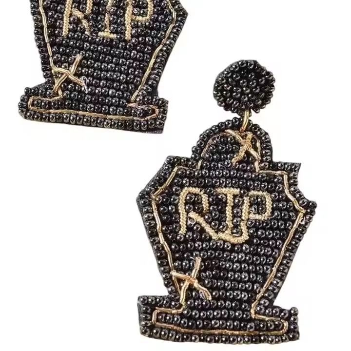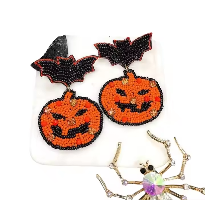 ต่างหูแบบห้อยประดับลูกปัดสำหรับเทศกาลฮาโลวีนต่างหูห้อยฟักทองสีดำและสีทองโดยงานฝีมือ MD
