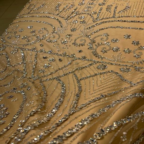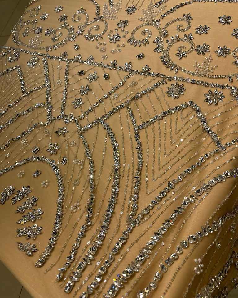 ผ้าลูกไม้ปักลายดอกไม้ประดับคริสตัล พรีเมียม เหมาะสำหรับชุดแต่งงาน ชุดราตรี และเสื้อผ้าแฟชั่นชั้นสูง