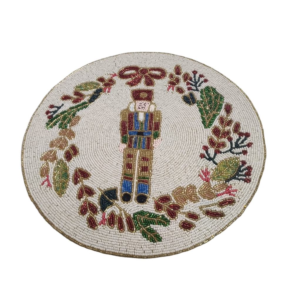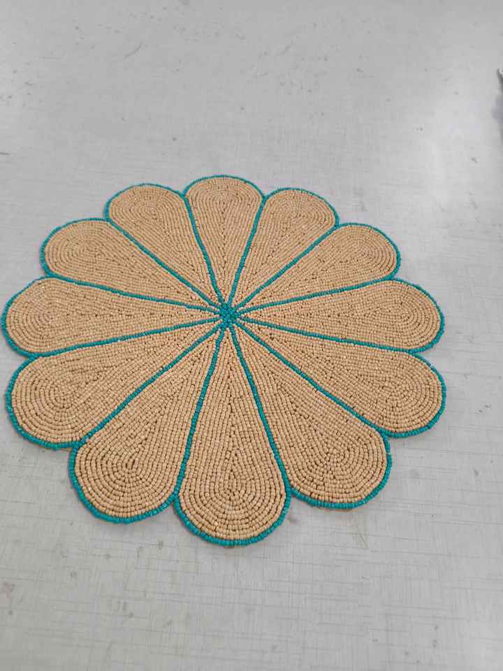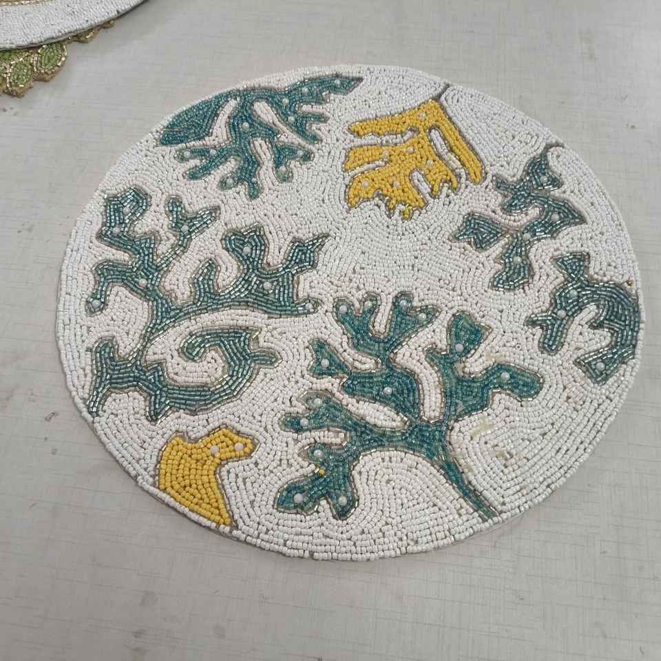 Beaded Floral Table Runner Unique Pink Green Flower Design Handmade Embroidered placemat for Drinkware Artisan Beaded Table Mat