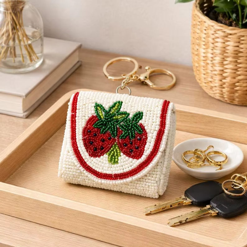 สายคล้องกุญแจทำมือประดับลูกปัดสำหรับผู้หญิง สายคล้องกุญแจประดับลูกปัดเม็ดเล็กแบบสั่งทำพิเศษสำหรับบัตรประจำตัว