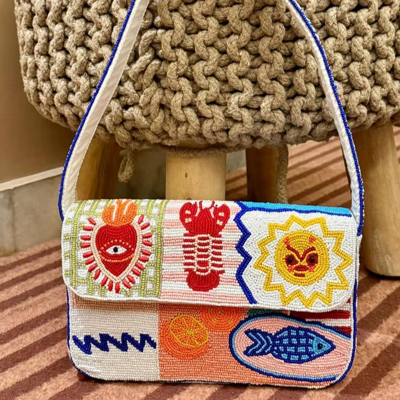 กระเป๋าคลัทช์ปาร์ตี้ประดับลูกปัดลายเลมอน กระเป๋าสะพายไหล่ประดับลูกปัดดีไซน์เนอร์ กระเป๋าถือหรูหราสำหรับงานปาร์ตี้