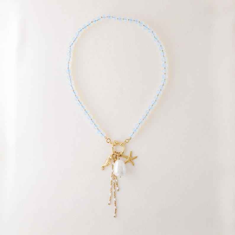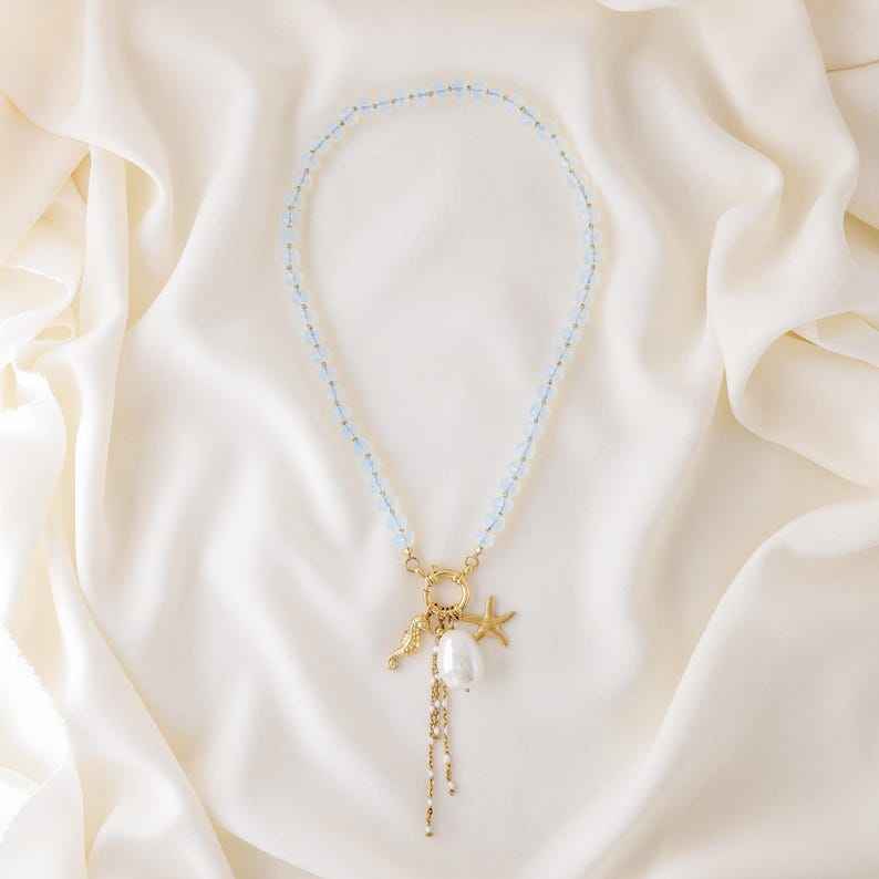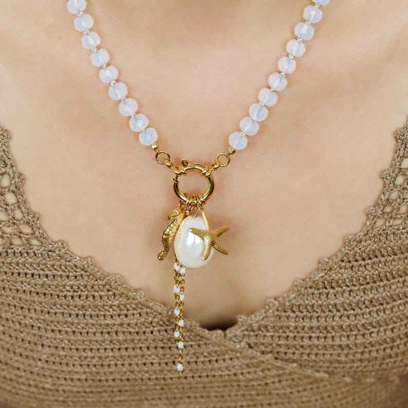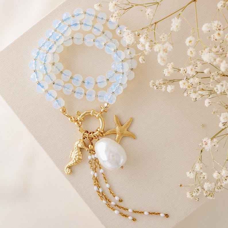 สร้อยคอไข่มุกประดับจี้ลูกปัดหลากสี