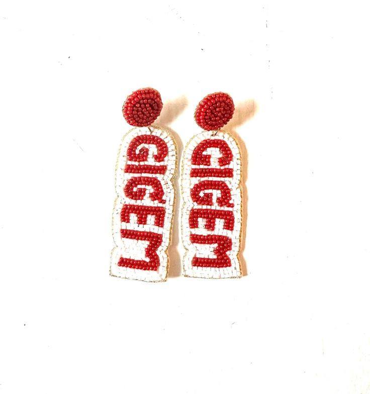 Beaded Ole Miss Collegiate Hotty Toddy Game Day Cute Christian Charm Earrings Handmade From India for Women