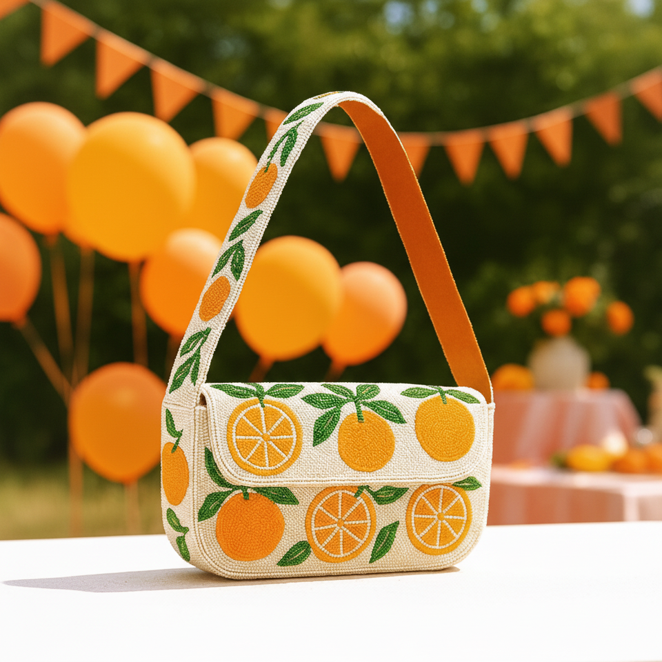 กระเป๋าสะพายลูกปัดสีส้มกระเป๋าสีส้มกระเป๋าถือลูกปัดสีส้มกระเป๋าถือสีส้มแฮนด์เมด