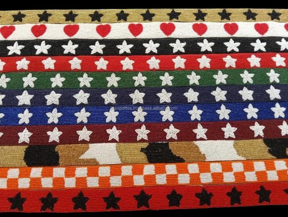 สายสะพายกระเป๋าแบบปรับได้ ทำมือ วินเทจ ประดับลูกปัด กันน้ำ เป็นมิตรกับสิ่งแวดล้อม ลายดาว หัวใจ ลายพราง ลายตาราง ขายส่ง