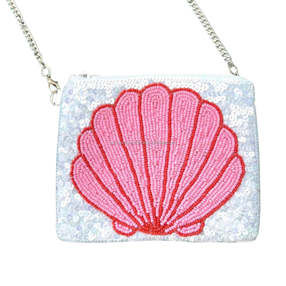 กระเป๋าคลัทช์ประดับลูกปัดเปลือกหอย งานแฮนด์เมด ปักเลื่อมมุก ผ้าฝ้ายลายดอกไม้ ซิป ดีไซน์หรูหรา แฟชั่นสำหรับงานเลี้ยงตอนเย็น