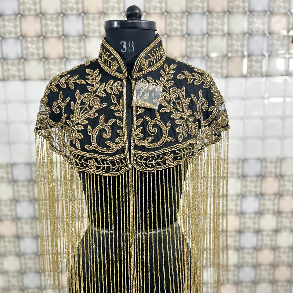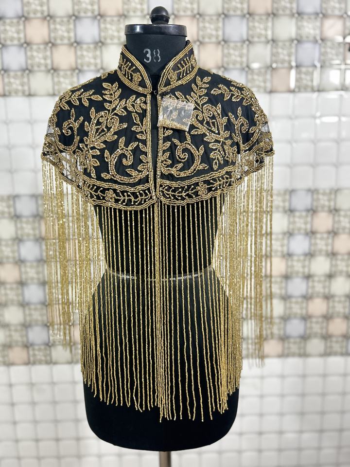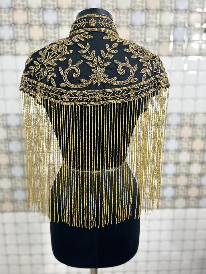เสื้อคลุมเบอร์เลสก์เทศกาลที่สวยงามพร้อมการปักและการตกแต่งมุกภาพเงาตรงที่คอสำหรับงานเทศกาล