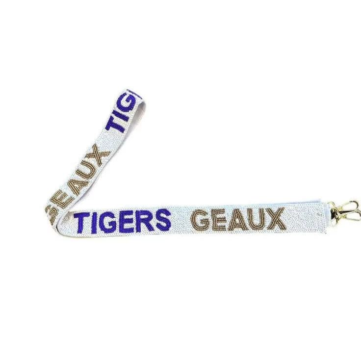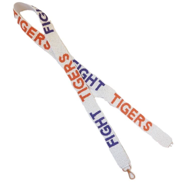 สายกระเป๋าปักลาย FIGHT TIGERS สำหรับวันแข่งขัน ทำด้วยมือ สำหรับผู้หญิงและเด็กผู้หญิง ประดับด้วยลูกปัดแก้ว ขนาดปรับแต่งได้