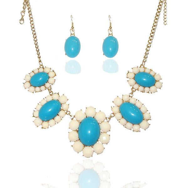 ชุดสร้อยคอหินสีฟ้าชุบทองลูกปัด1103425เครื่องประดับแฟชั่นสำหรับผู้หญิง