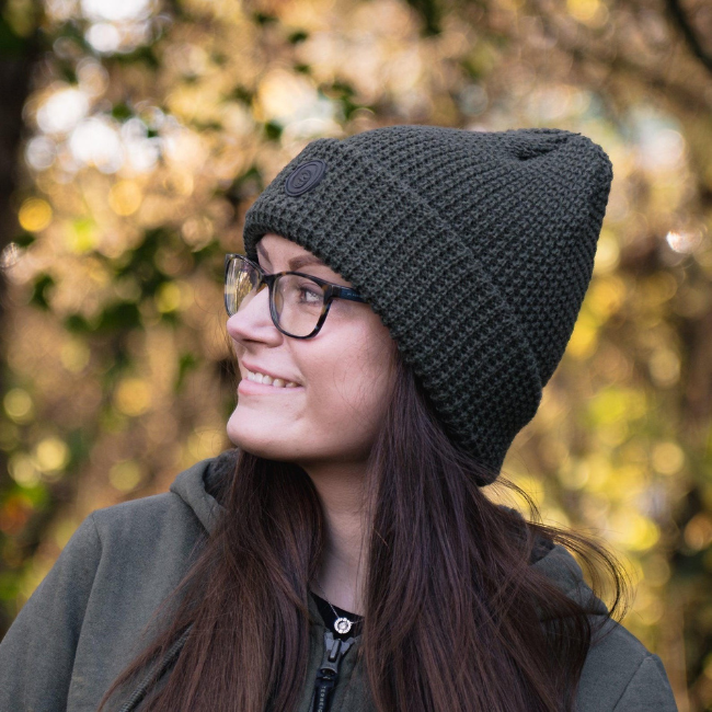 หมวกบีนนี่สีเขียวเข้มทำจากพลาสติก100% รีไซเคิลหมวกถักหมวกชาวประมงกลางแจ้งของขวัญสำหรับเขาหมวกบีนนี่สำหรับฤดูหนาว