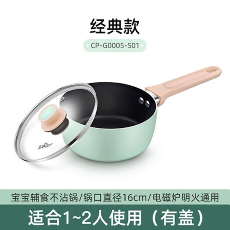 หม้อต้มอาหารเด็กแบร์เบบี้ หม้อเคลือบกันติดพร้อมฝาปิด หม้อซุปขนาดเล็กสำหรับอาหารทารก สีเขียวคลาสสิก