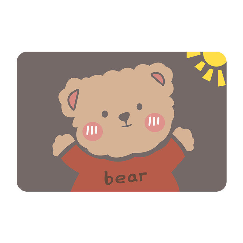 แผ่นรองอาบน้ำลายการ์ตูนรูปหมี รูปทรงสี่เหลี่ยมผืนผ้า ทำจากใยโพลีเอสเตอร์ดูดซับน้ำได้ดี ใช้สำหรับอ่างล้างจานในครัว หรือวางแปรงสีฟันในห้องน้ำ