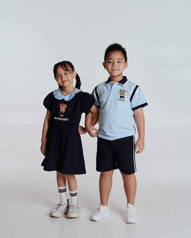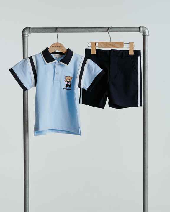 Design:Blue Short Sleeves Shirt and Dark Blue Short