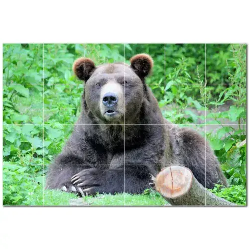 ภาพจิตรกรรมฝาผนังกระเบื้องเซรามิกหมี PT500110 72 "W x 48" H ชุดกระเบื้อง24 12X12