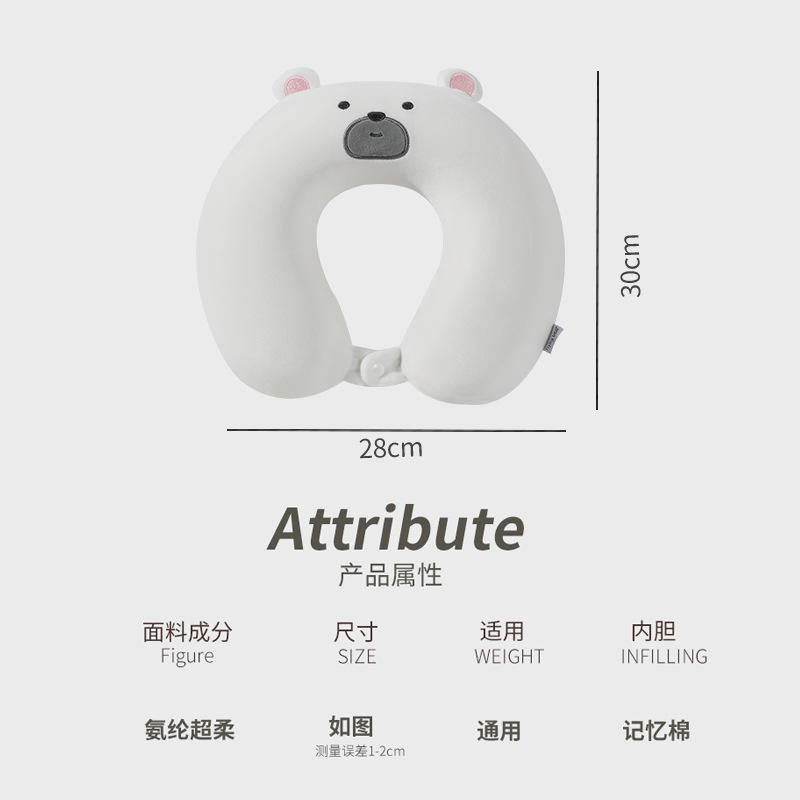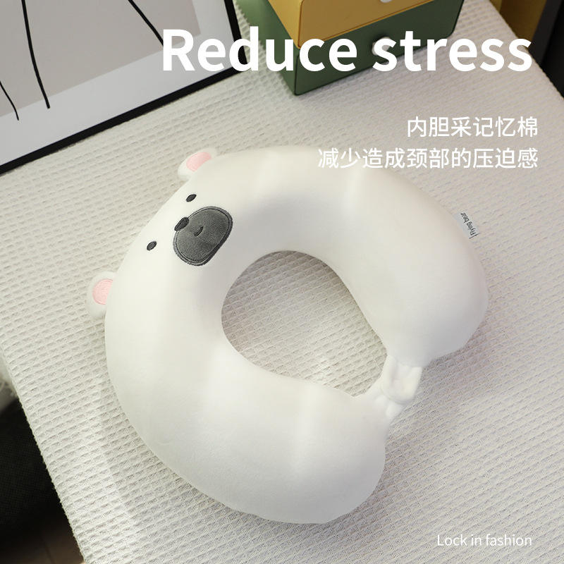 หมอนรองคอรูปตัวยูเมมโมรี่โฟมแบร์ สีขาว หมอนพกพาเพื่อการพักผ่อนและความสบาย