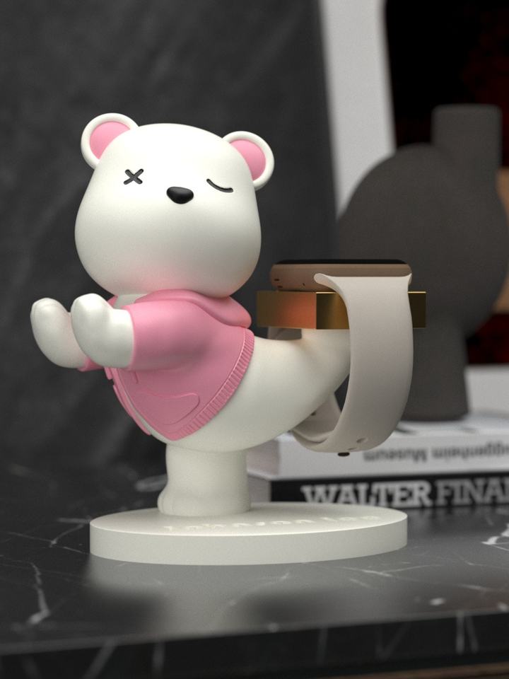 เครื่องประดับรูปหมีสำหรับนาฬิกา IWatch S9 Apple Huawei - แท่นชาร์จเรซิ่น งานแฮนด์เมด งานแกะสลักเพ้นท์มือ ธีมความรัก น่ารัก