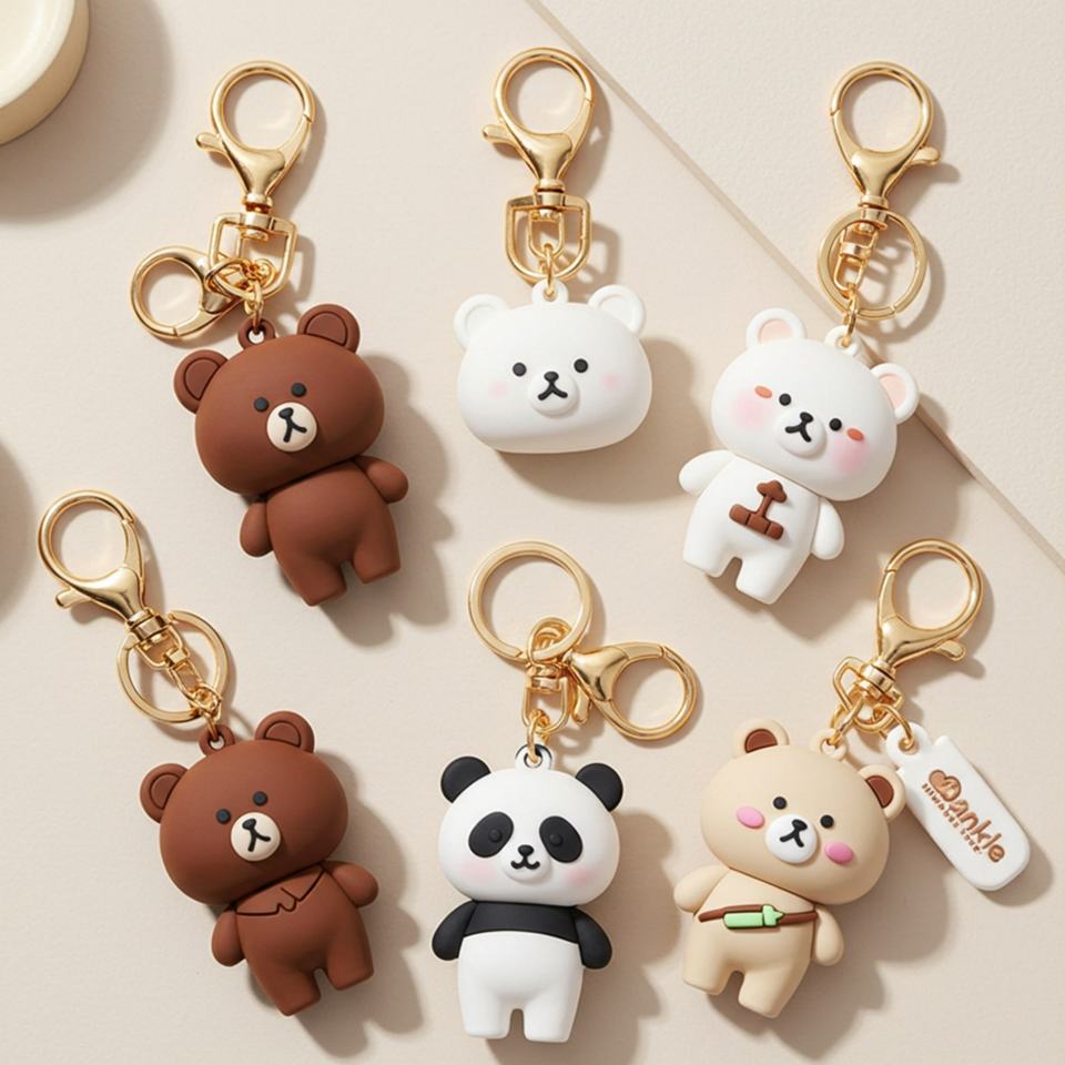 พวงกุญแจยางรูปตัวการ์ตูน 3 มิติ PVC แบบหมี พร้อมคาราไบเนอร์ รับทำโลโก้ตามสั่ง