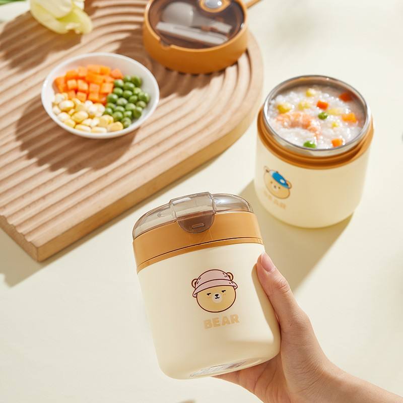 ถ้วยซุปสแตนเลสแบร์ 304 ฉนวนสุญญากาศแบบพกพาป้องกันการรั่วซึมพร้อมที่จับสำหรับการเดินทางและใช้ในสำนักงาน