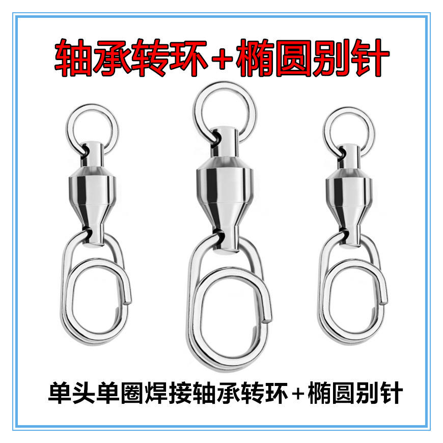 แหวนหมุนพร้อมห่วงเกี่ยวรูปไข่แบบหัวเดียว เชื่อมด้วยนิกเกิลชุบ สำหรับอุปกรณ์ตกปลา
