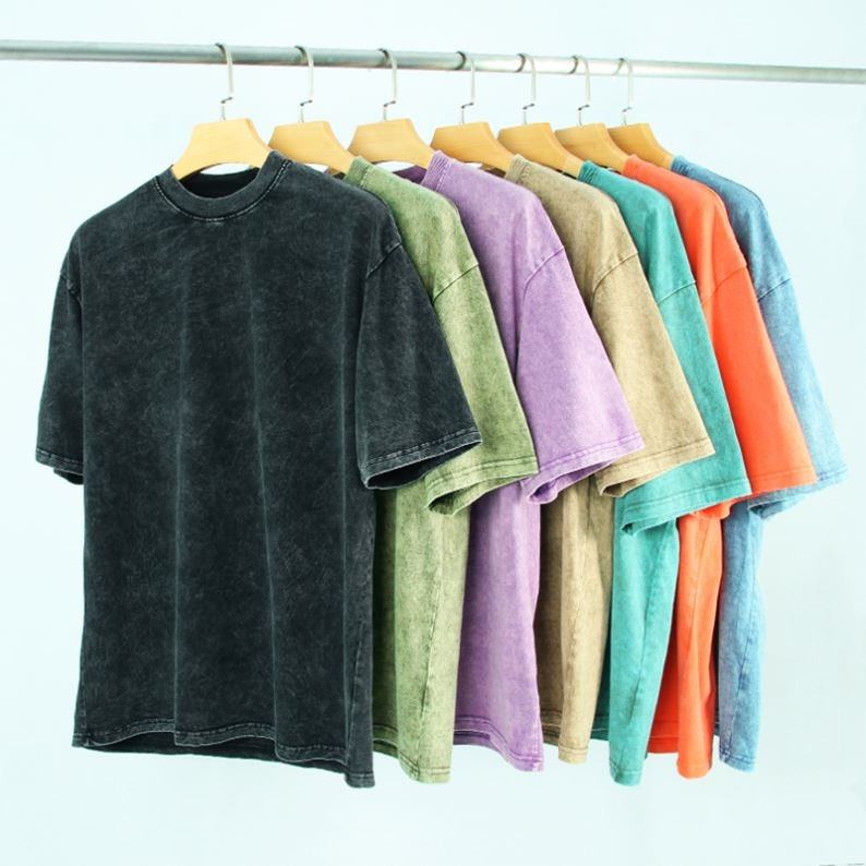 เสื้อยืดพิมพ์ลายโอเวอร์ไซส์ผ้าคอตตอนขนาดใหญ่โชว์ไหล่ลายเรียบกรดสีเทาแบบวินเทจ