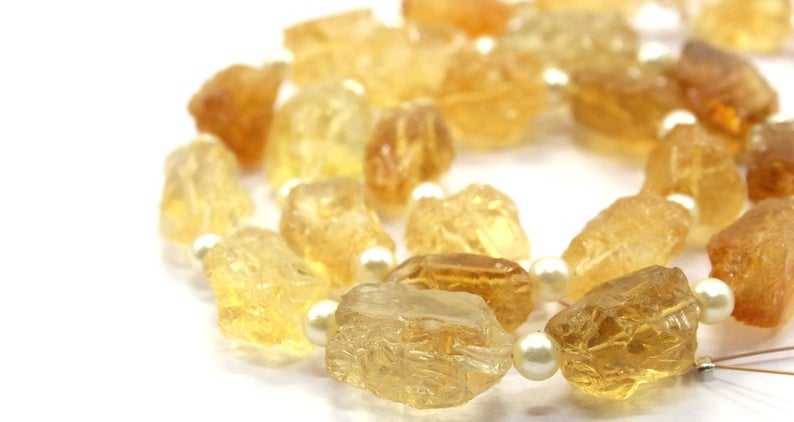 หินซิทรินสีเหลืองธรรมชาติ1เส้นสวยงาม25ชิ้นทรงหลวมไม่ผ่านการบำบัดคุณภาพหยาบ