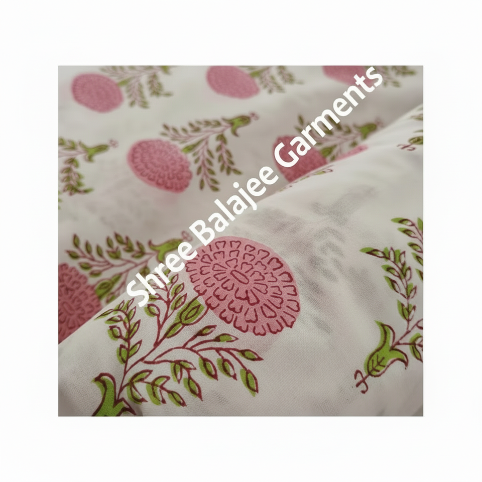 Beautiful 100% Pure Cotton Eco-Friendly Quick-Dry Fabric Indian Hand Block Print Light Pink Green Floral Bags Accessories