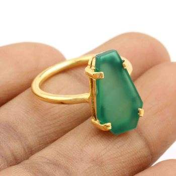 Natural Green Onyx Sterling Silver Gold Plated Coffin Ring