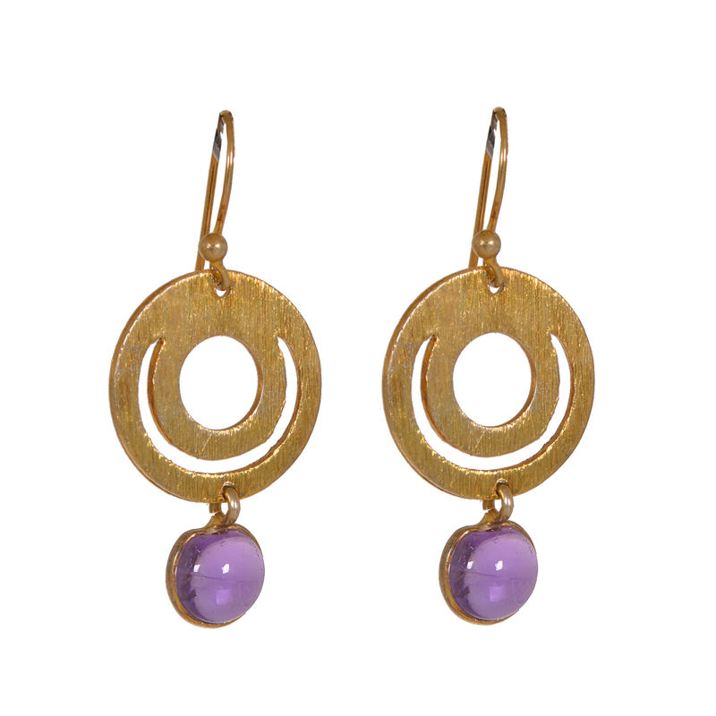 925ชุบทอง18k สวยต่างหูห้อยเงินสเตอร์ลิงทำด้วยมือพลอยอเมทิสต์อินเดีย