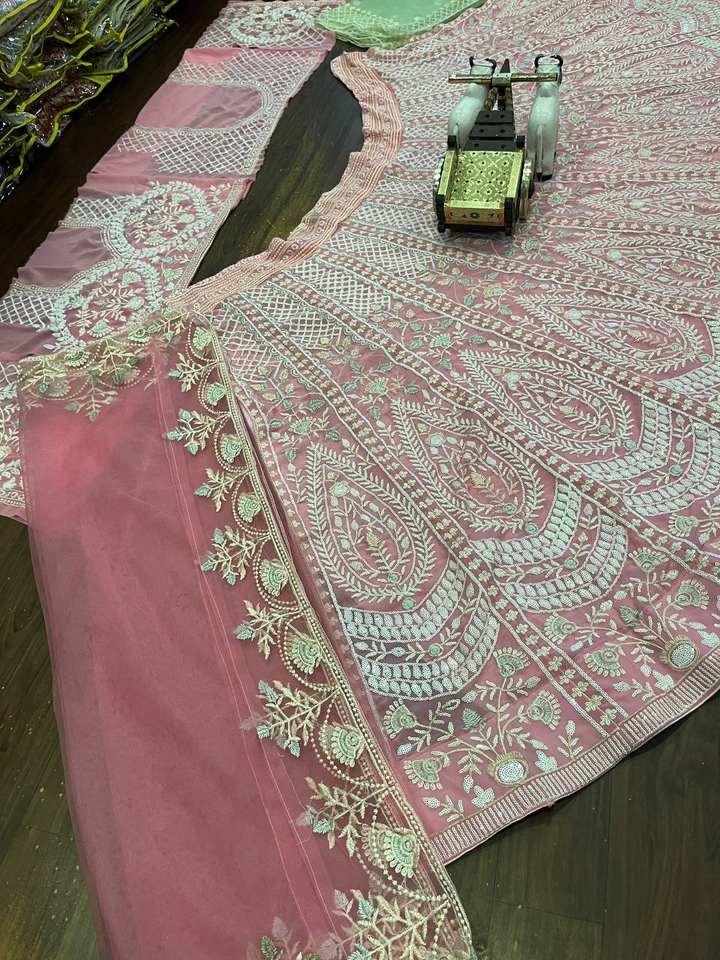หนังเทียม georgette lehenga พร้อมด้วยงานปักเลื่อมดูอัลดูอัลยาว4เมตรที่สวยงาม