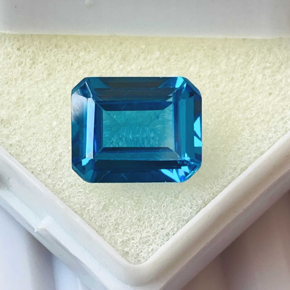 พลอยเพชรโมอิสสีฟ้าตัดมรกตสวยงาม7ชิ้นสำหรับเป็นของขวัญงานหมั้นสีฟ้า