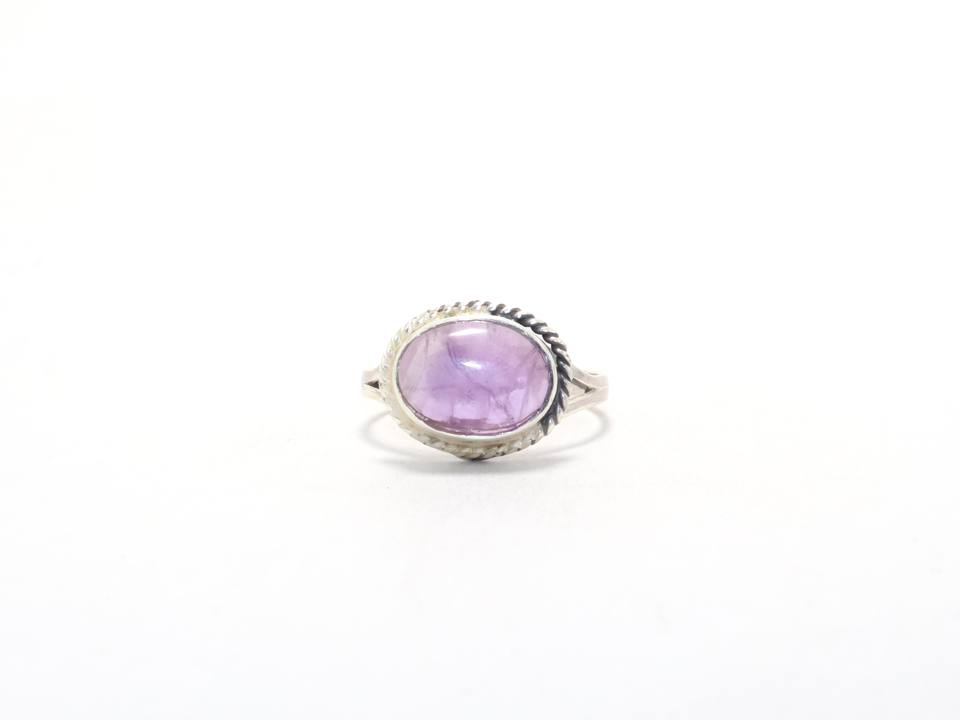 แหวนแอเมทิสต์เงินสเตอร์ลิง925สวยของขวัญแต่งงานสไตล์วินเทจสำหรับพลอยสีม่วงมินิมอลของเธอผู้จำหน่ายขายส่ง