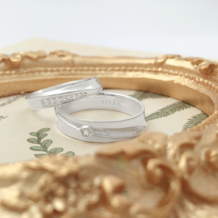 แหวนคู่รักแฟชั่นเงินสเตอร์ลิง925สวยสวมนิ้วสำหรับผู้หญิงสำหรับงานแต่งงานโรแมนติก