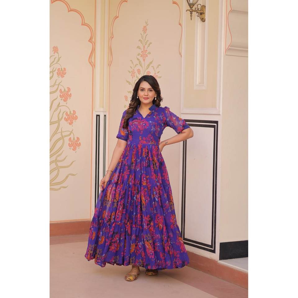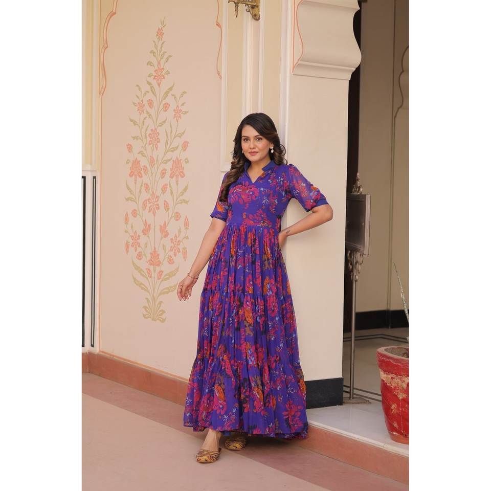 ชุดเดรสทรงเอไลน์สวยงามพร้อมลายดอกไม้พิมพ์ลายสบายตา ผ้าชีฟองเอวทรงเอ็มไพร์ เหมาะสำหรับงานปาร์ตี้
