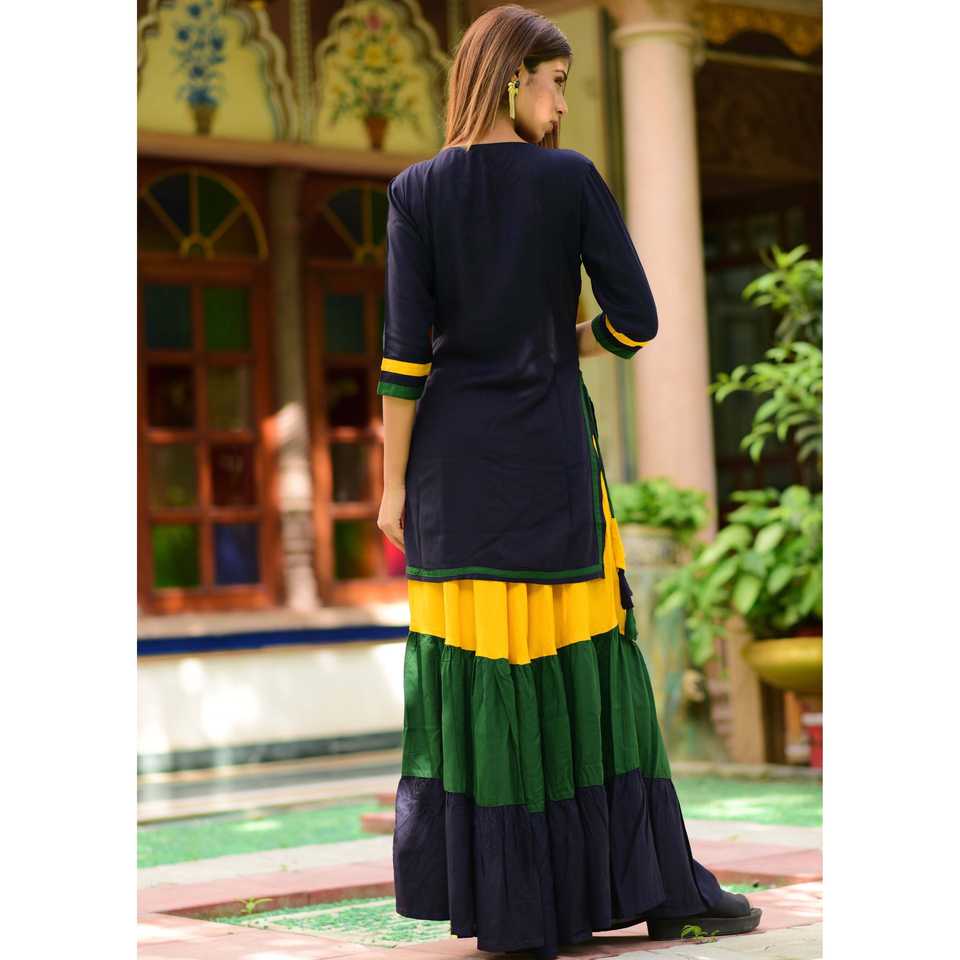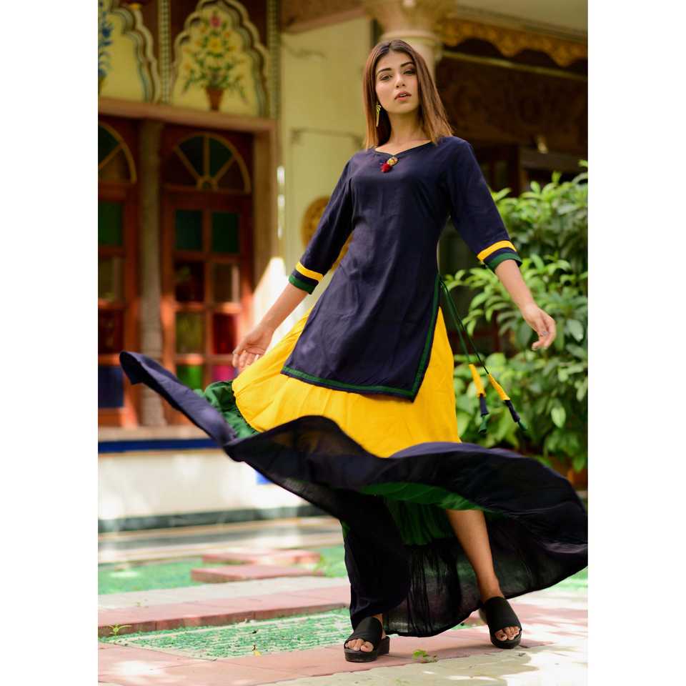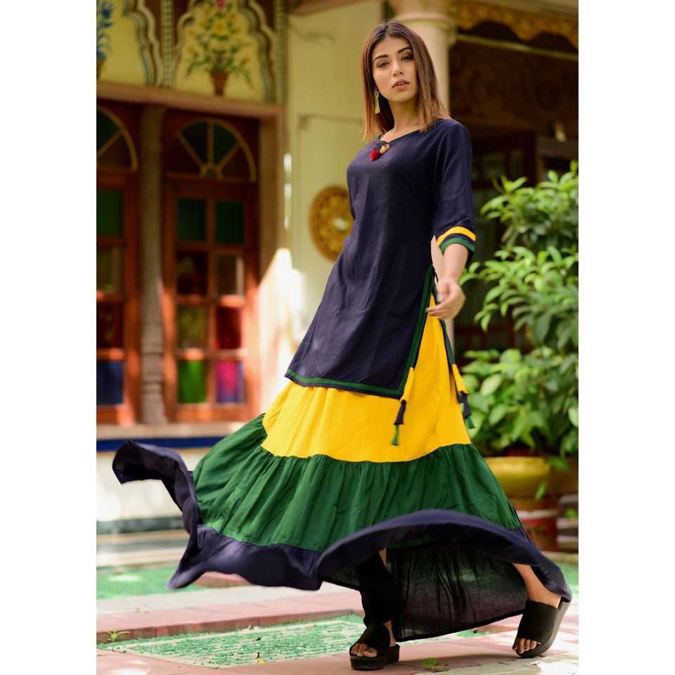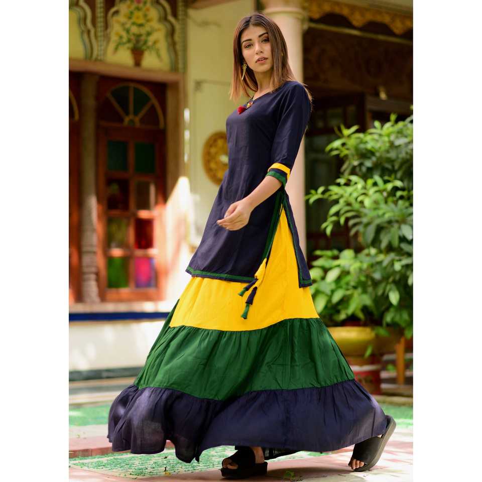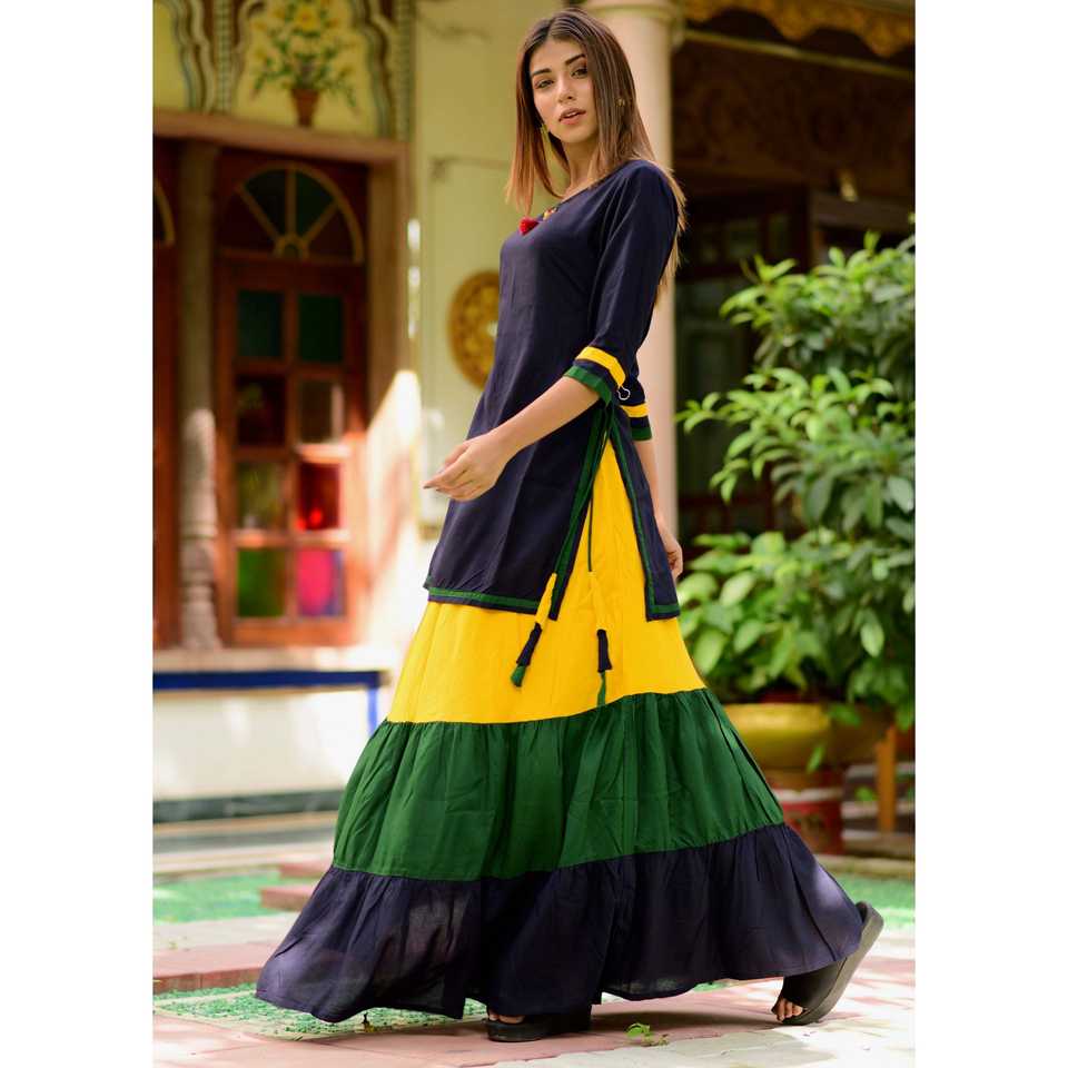 ชุดเดรสกระโปรงทรงเอลายทางหลากสีสวยงาม