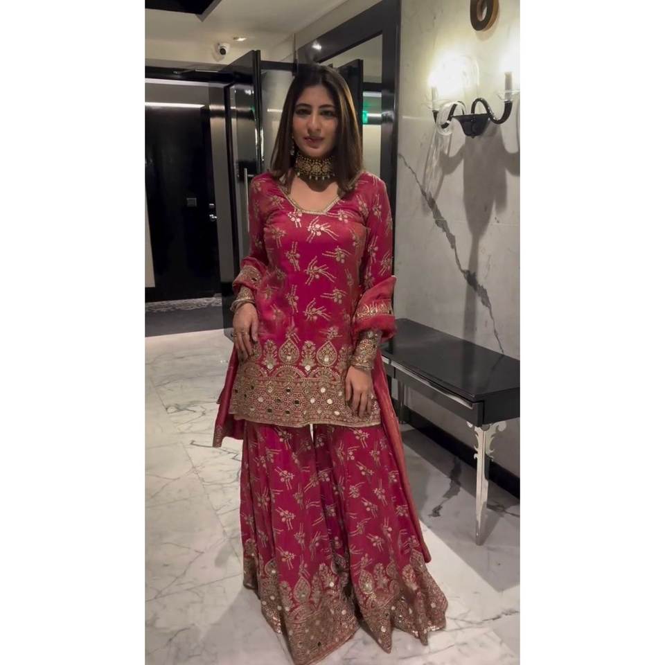 เสื้อทรงเอไลน์สวยงามและชุดชาราร่าพร้อมผ้าคลุมไหล่สำหรับงานปาร์ตี้ เหมาะสำหรับคุณแม่เจ้าสาว