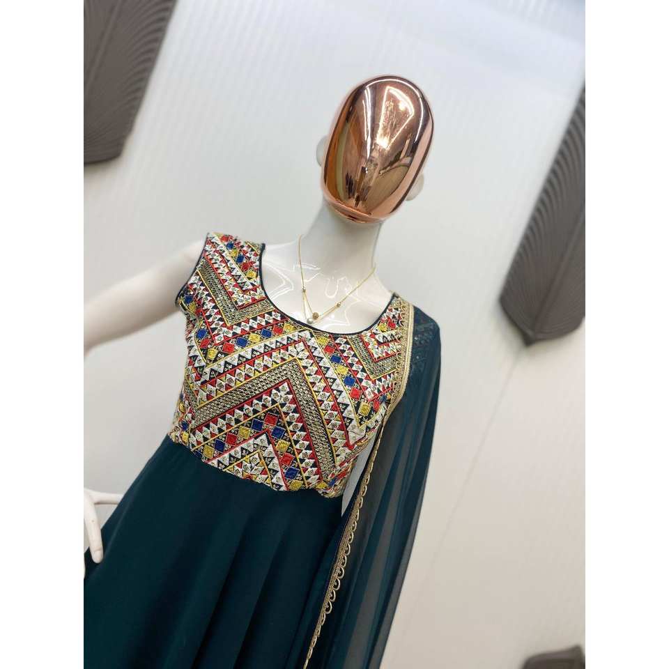 ชุดอานาร์กาลีสวยงามพร้อมผ้าคลุมไหล่สำหรับงานปาร์ตี้ ชุดราตรีหรูหรา