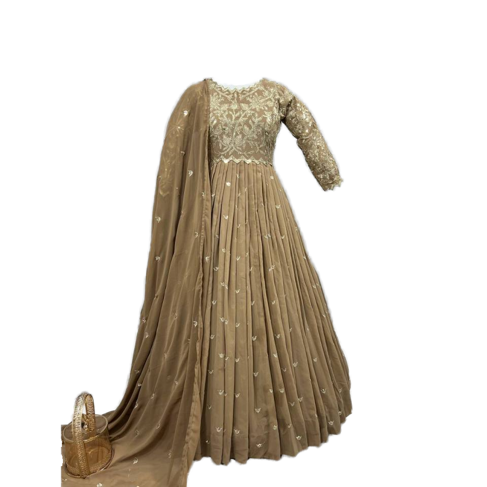 ชุดเดรส Anarkali สวยงามพร้อมผ้าคลุมไหล่สำหรับงานปาร์ตี้ ชุดเดรสคลับสุดหรู