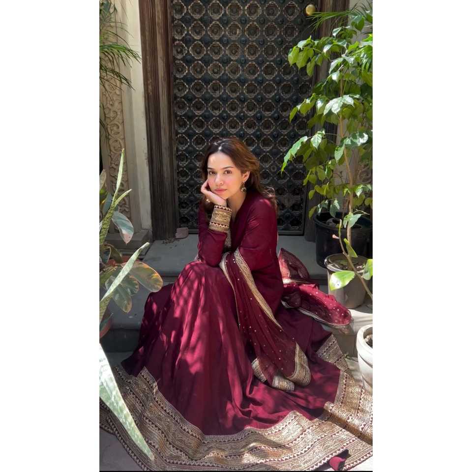 ชุดเดรส Anarkali สวยงามพร้อมกางเกงและผ้าคลุมไหล่ สำหรับงานปาร์ตี้ ไซส์ L