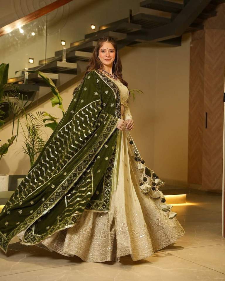 ชุดปาร์ตี้ที่สวยงามและได้รับความนิยมมากที่สุด lehenga พร้อมงานปัก, Jari และงานปักเลื่อมหนัก