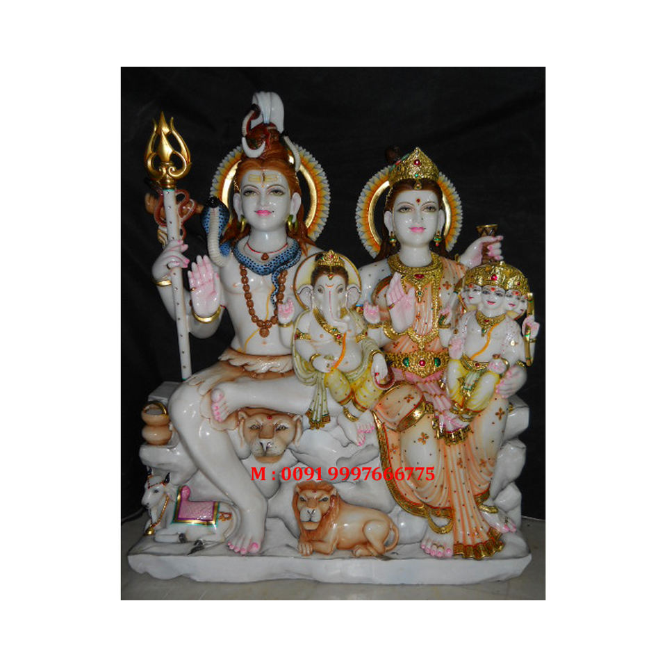 หินอ่อนสีขาวสวยงามและเป็นแบบดั้งเดิม พร้อมการตกแต่งอย่างประณีตและขัดเงา รูปปั้นชิวพาริวาร์สำหรับบ้านและวัดเพื่อการบูชา