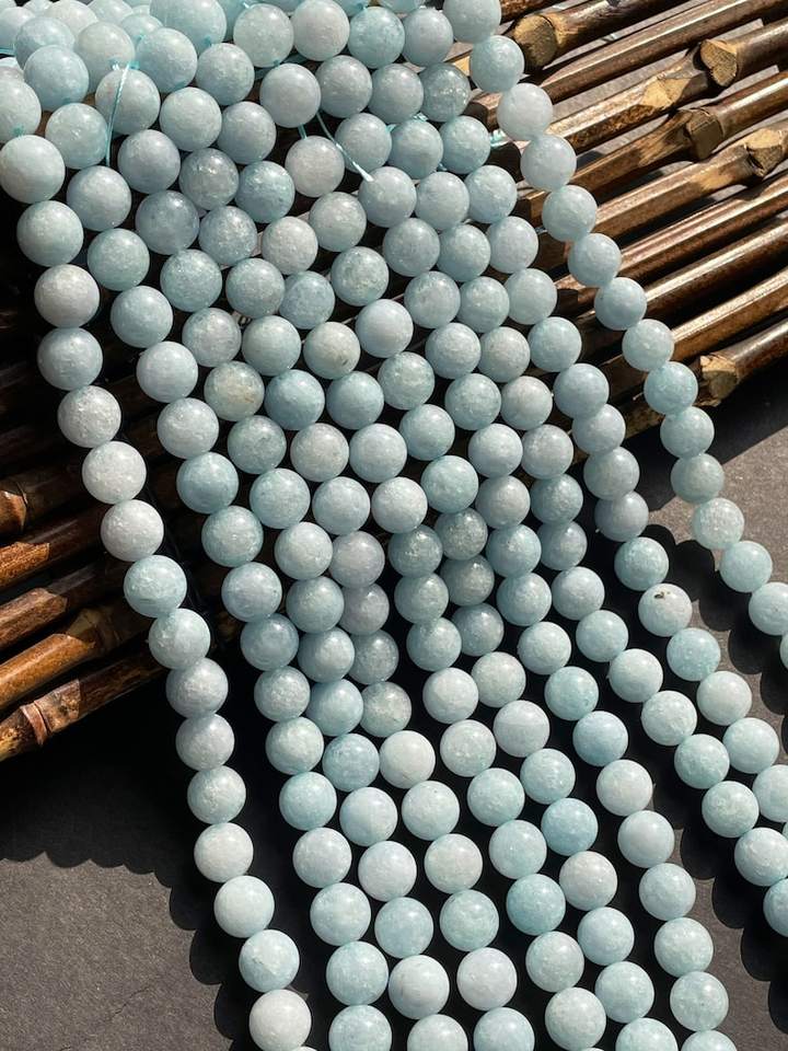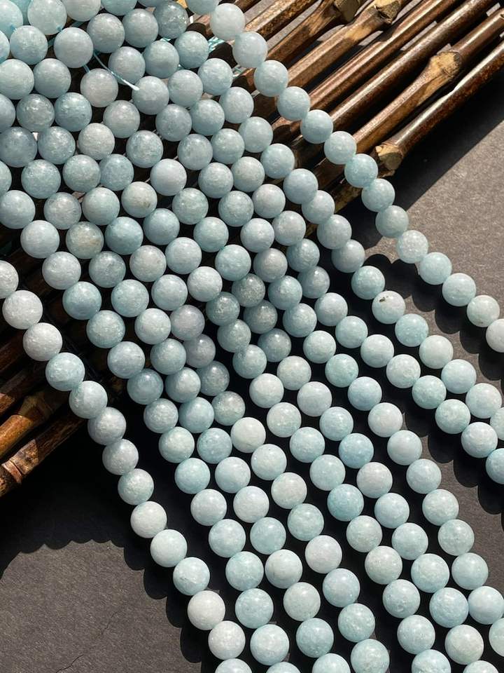 ลูกปัดหินอความารีนควอตซ์ธรรมชาติ