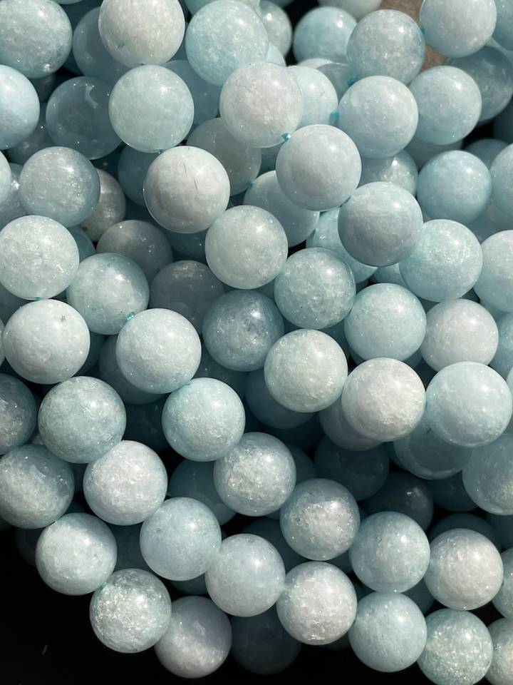 ลูกปัดหินควอตซ์อะความารีนสวยงาม ทรงกลม สีฟ้าสดใส ลูกปัดพลอยเต็มเส้น ยาว 15.5 นิ้ว สำหรับทำเครื่องประดับ