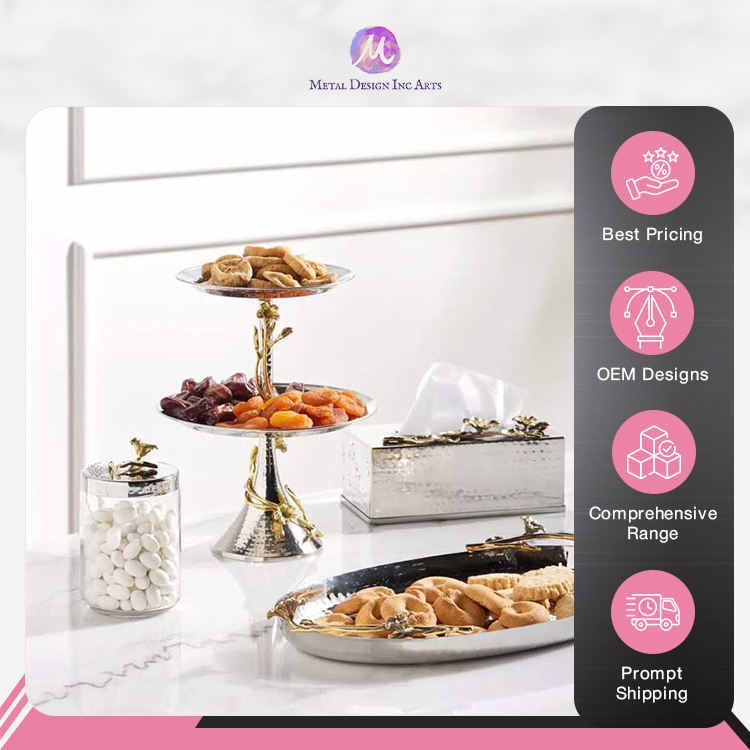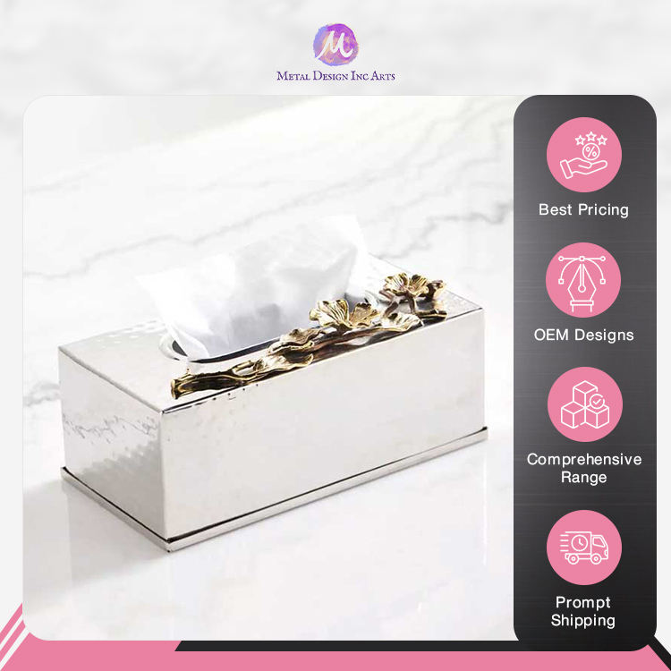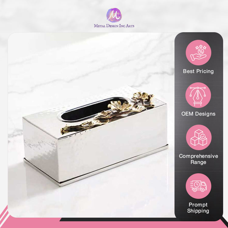 ชื่อผลิตภัณฑ์:ที่ใส่กระดาษทิชชูสีเงินพร้อมลายดอกไม้ใบไม้สีทอง