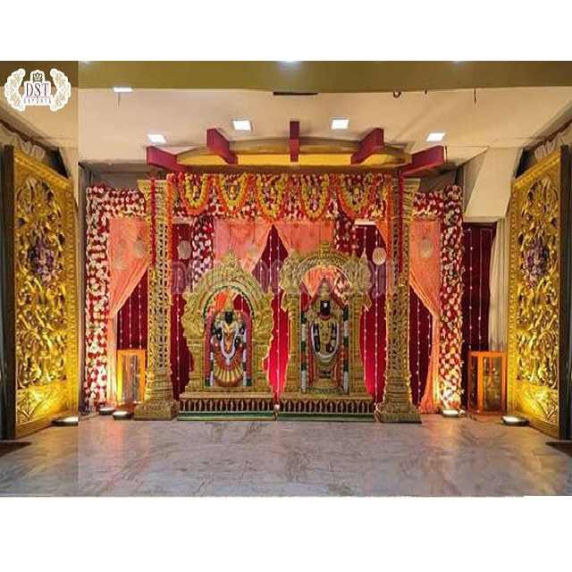 มณฑปงานแต่งงานบาลาจีและปัทมวทิติที่สวยงาม ดีไซน์ล่าสุดจากอินเดียใต้ ทำจากไฟเบอร์กลาส สำหรับงานเทศกาลและงานแต่งงานแบบดั้งเดิม ตกแต่งด้วยสีทอง ผลิตในสหรัฐอเมริกา