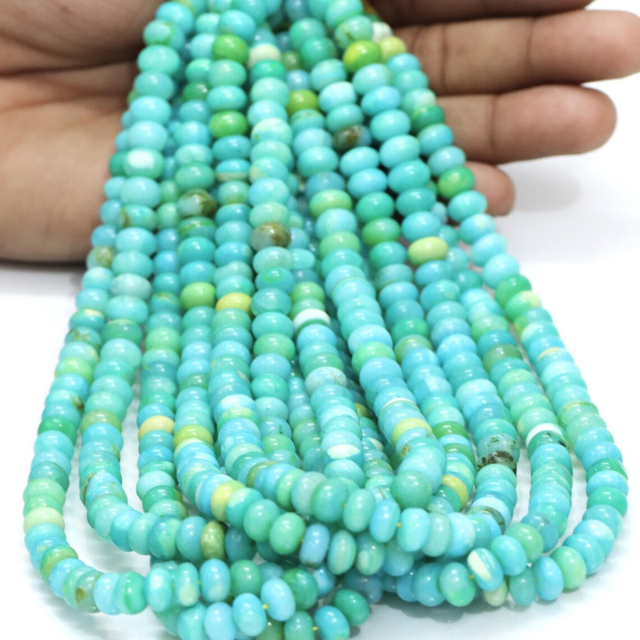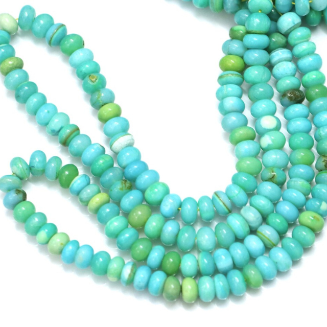 ลูกปัดโอปอลสีเขียวบีชทรงรอนเดลล์เรียบเนียนสวยงาม, ลูกปัดโอปอลสีเขียวบีชเรียบเนียน 7-10 เม็ด, ลูกปัดโอปอลคุณภาพ AAA