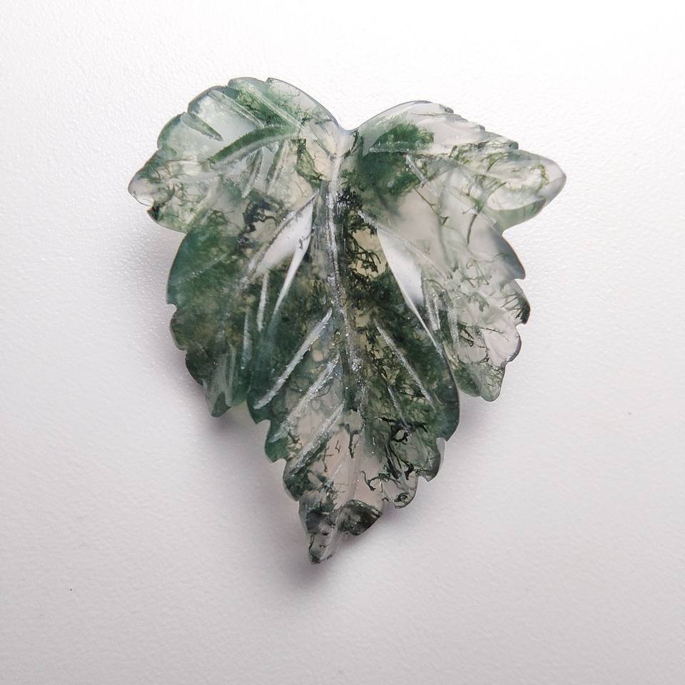 พลอยมอสอาเกตธรรมชาติสีเขียวทรงใบไม้ ขนาด 18-41 มม. สวยงาม สำหรับสะสมงานศิลปะ