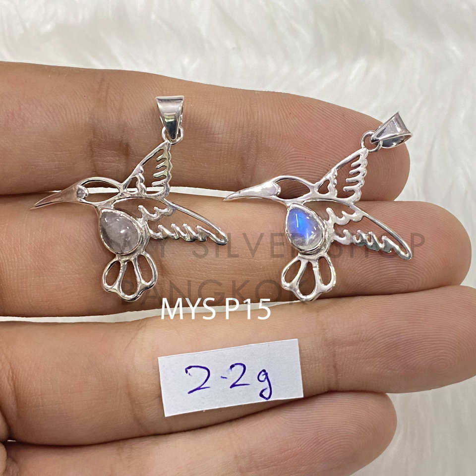 จี้เงินแท้ดีไซน์นกสวยงาม ประดับพลอย ราคาขายส่ง เครื่องประดับเงินแท้