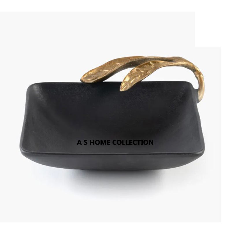 Beautiful Black Color square Shape Golden Leaf Decorative Serving Bowl