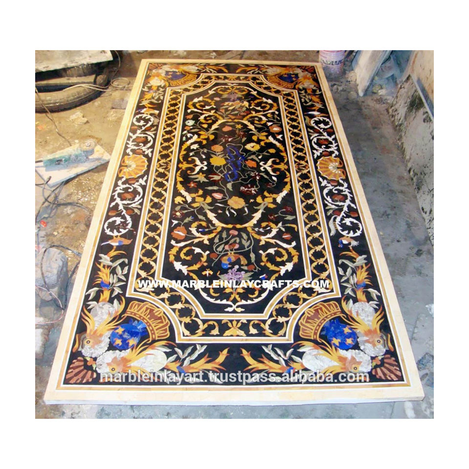 Beautiful Black Marble Inlaid Petra Dura Dining Table TopProduct Name