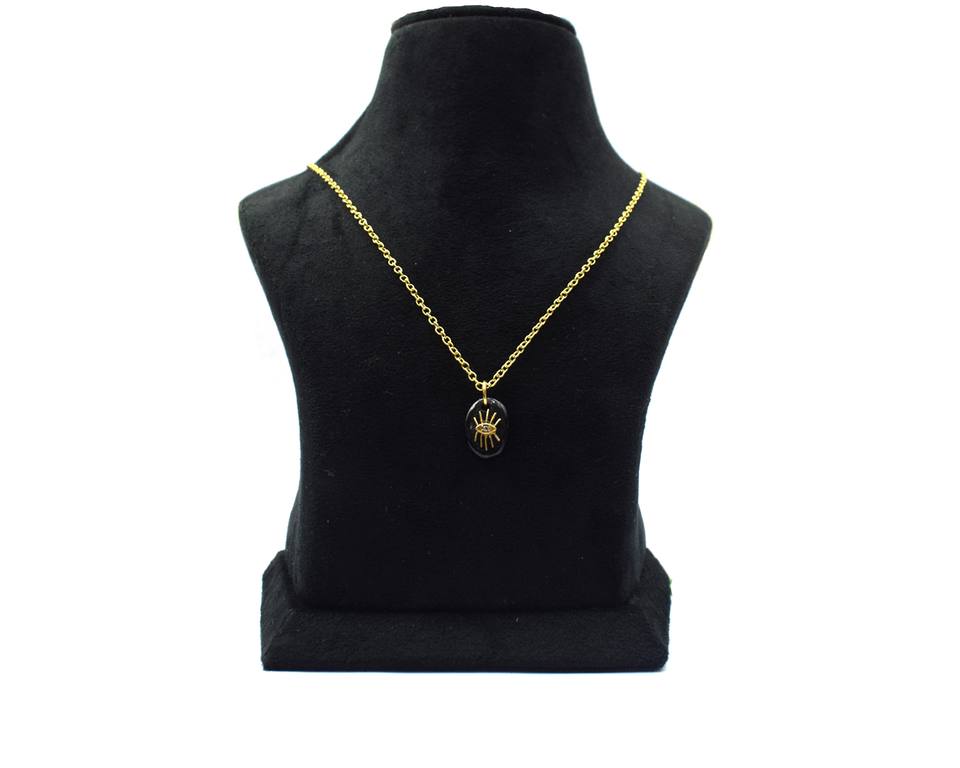 จี้ห้อยคอทรงรีชุบทอง ประดับพลอยโอนิกซ์สีดำ